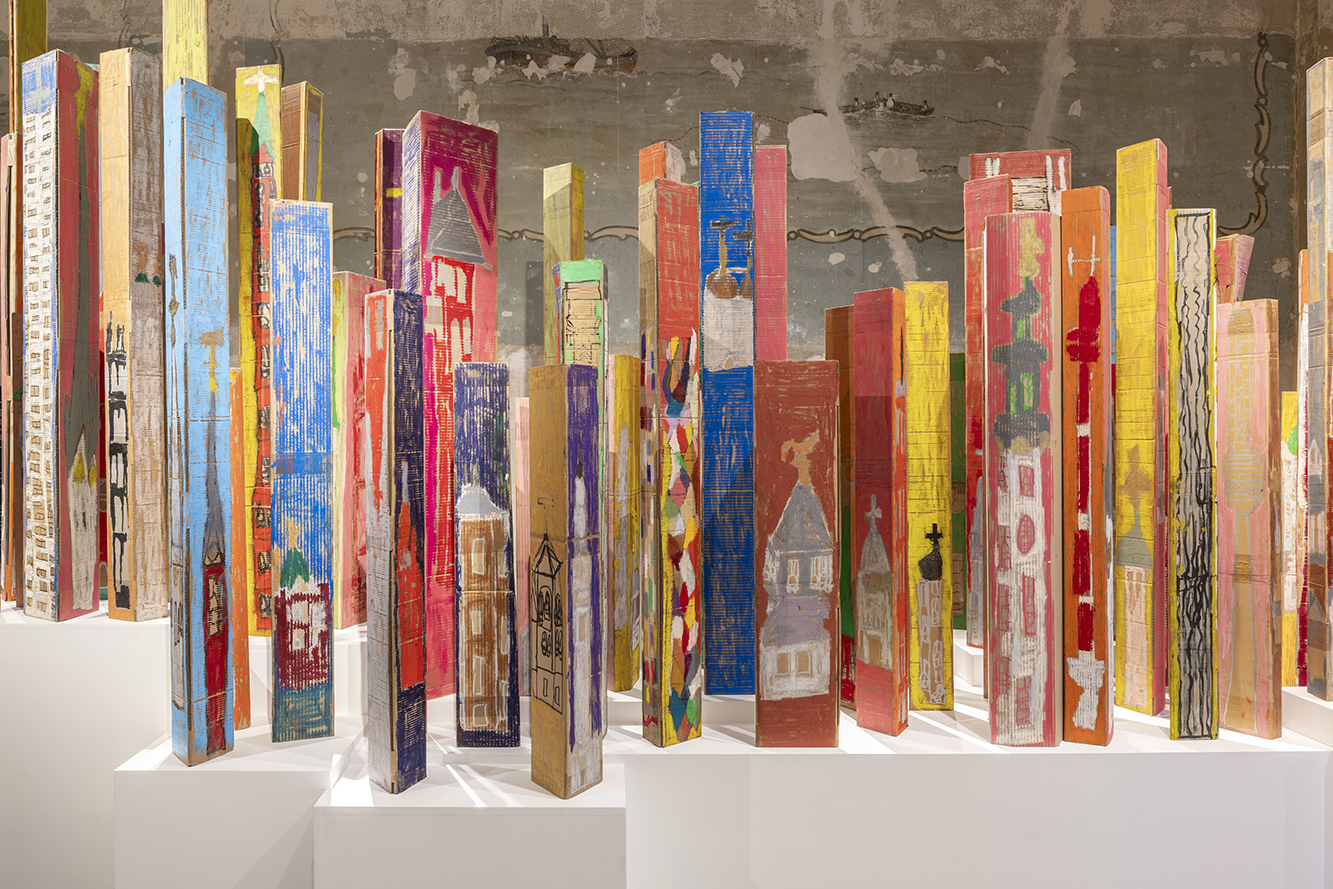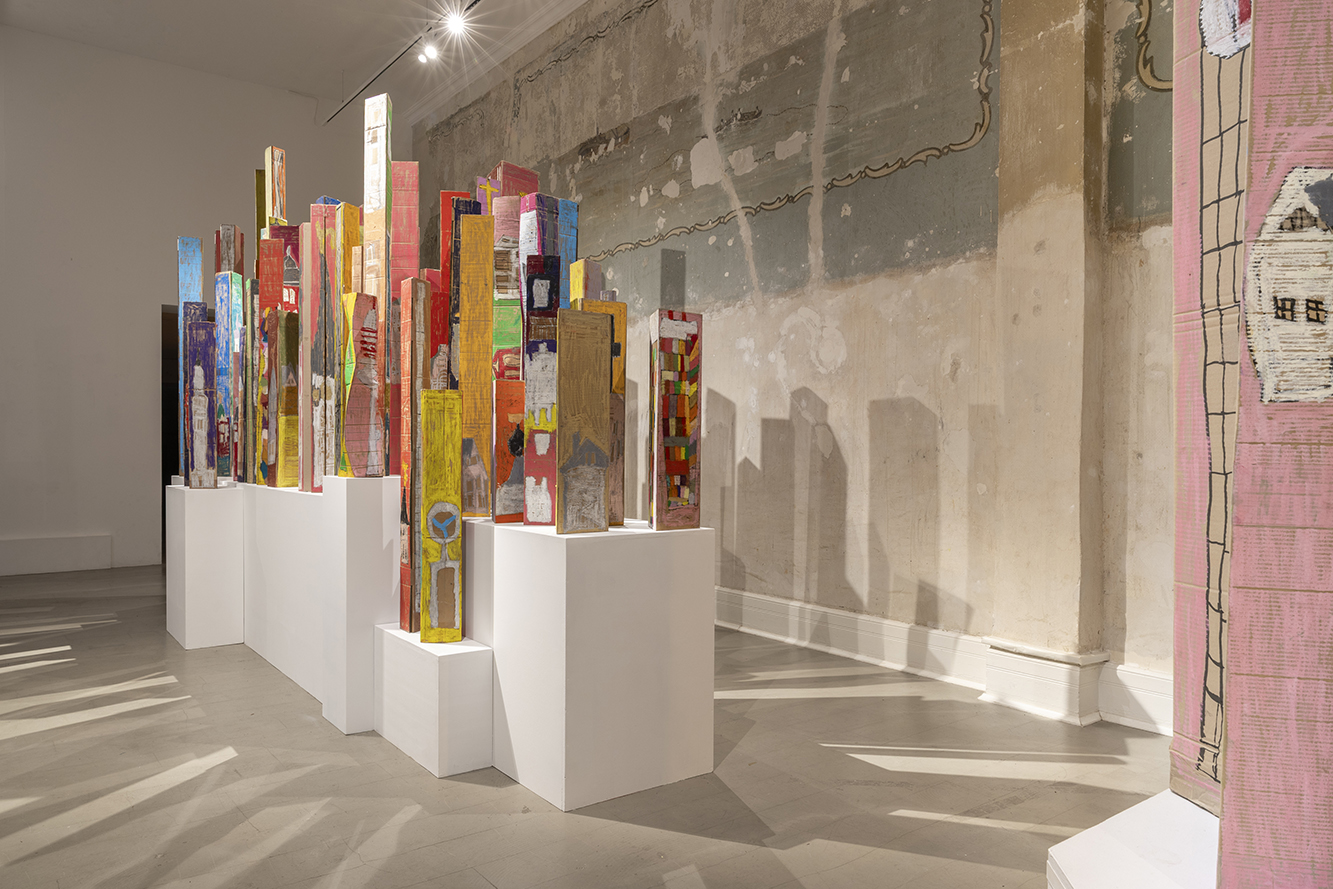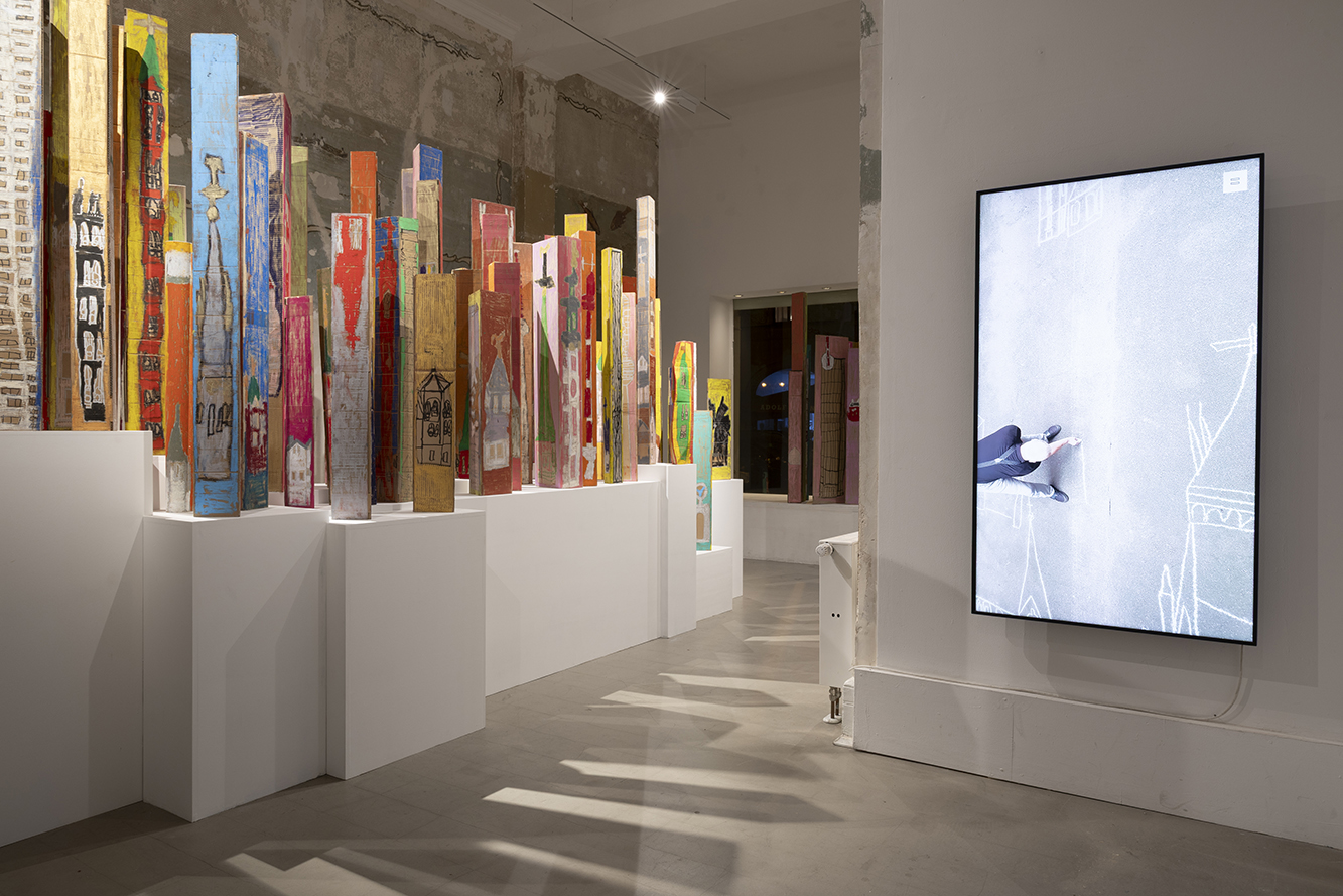 Die Ausstellung legt den Schwerpunkt auf Türme. Mehrseitige Bildträger aus Pappe werden zu multidimensionalen Skulpturen, Tonaufnahmen von Erzählungen des Künstlers über das Erlebte zur Hörreise.