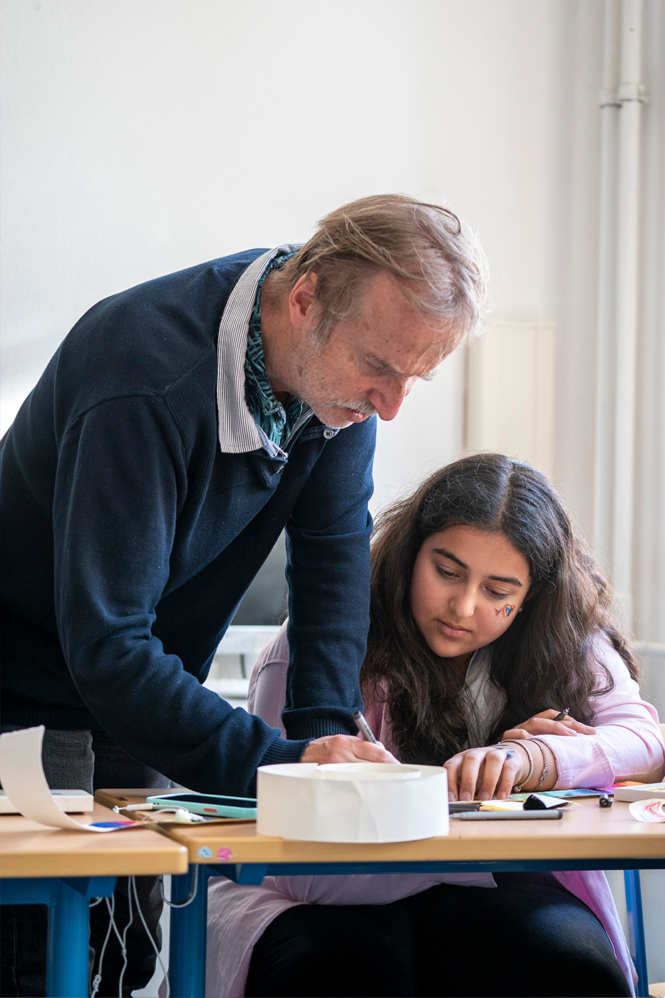 Since 2017 various workshop formats for young people have been offered on the premises of the studio. Three of the artists – Julius Bockelt, Markus Schmitz, Julia Krause-Harder and Franz von Saalfeld – accompanied by an assistant, provide insight into their work and creative approach. During the practical part of the workshops the students have the chance to work creatively under guidance.