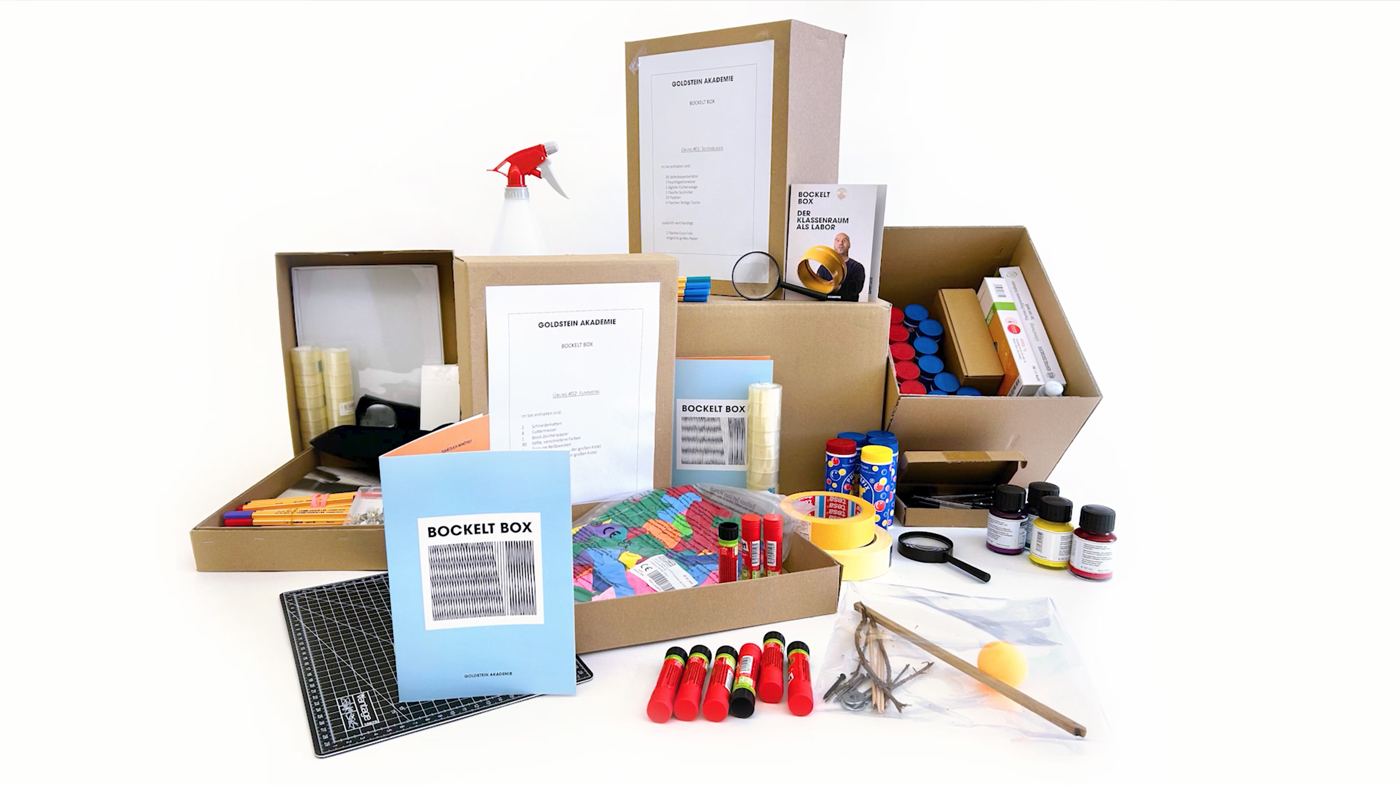 Die „Bockelt Box“ bietet ein außergewöhnliches Unterrichtsformat, das Schüler*innen dazu einlädt, selbst aktiv zu werden. Die Box enthält Videos und Materialien für die Arbeit der Schüler*innen. In den Videos leitet der Künstler Julius Bockelt die Schüler*innen an, mit den mitgelieferten Materialien seinen künstlerischen Impulsen zu folgen: Sie stellen haltbare Seifenblasen aus einer Spezialmischung her, füllen sie mit Tinte und „malen“ mit der platzenden Tinte auf große Wandpapiere. Sie beschäftigen sich mit Linien, Moirémustern, mit Lupen und Vergrößerungen, Schwerelosigkeit und Gravitation. Wolken werden beobachtet, fotografiert, nach Farben sortiert und collagiert. Töne werden aufgenommen und in einem experimentellen Konzert wiedergegeben, das an zeitgenössische Noise-Musik erinnert.
