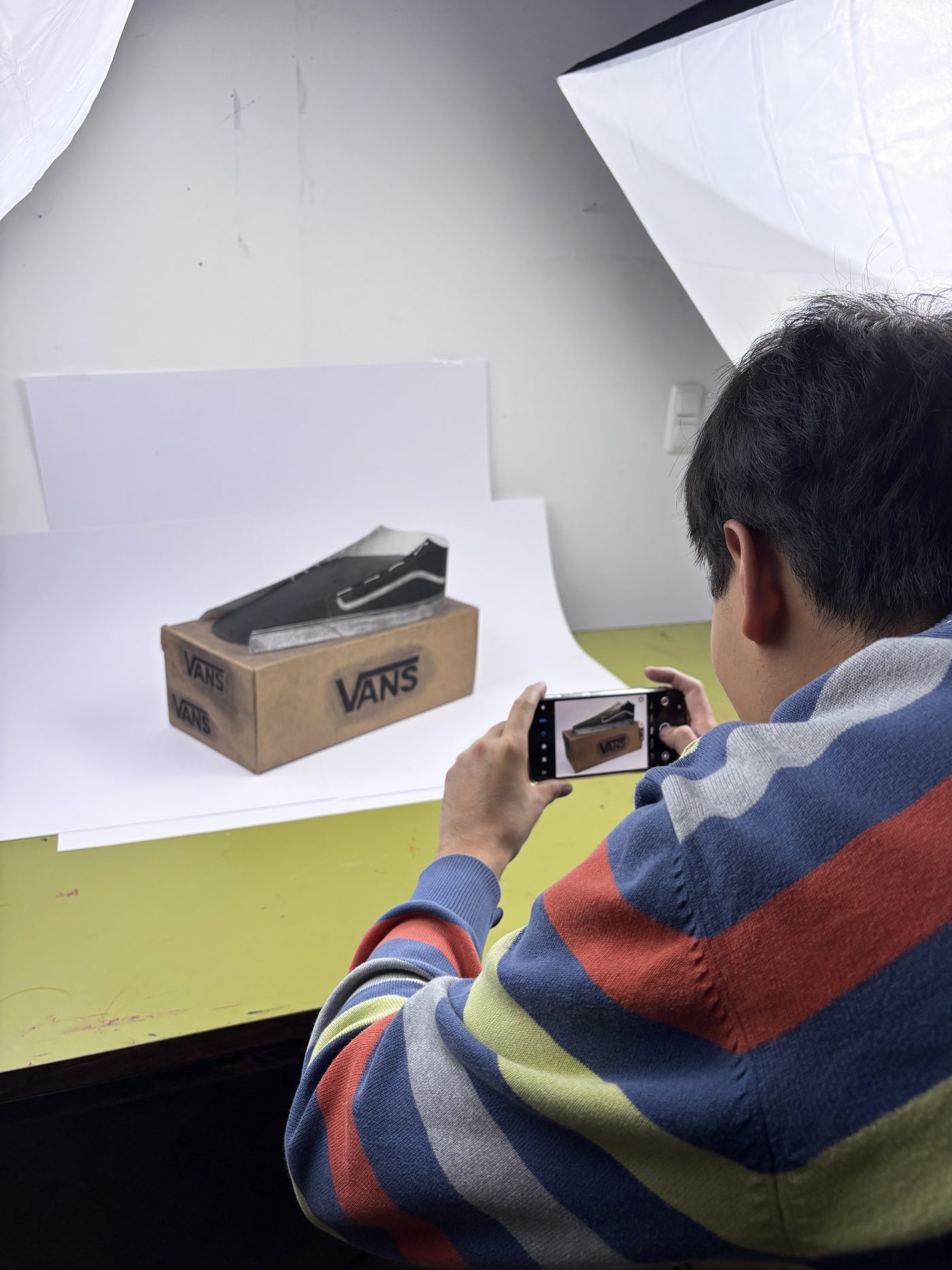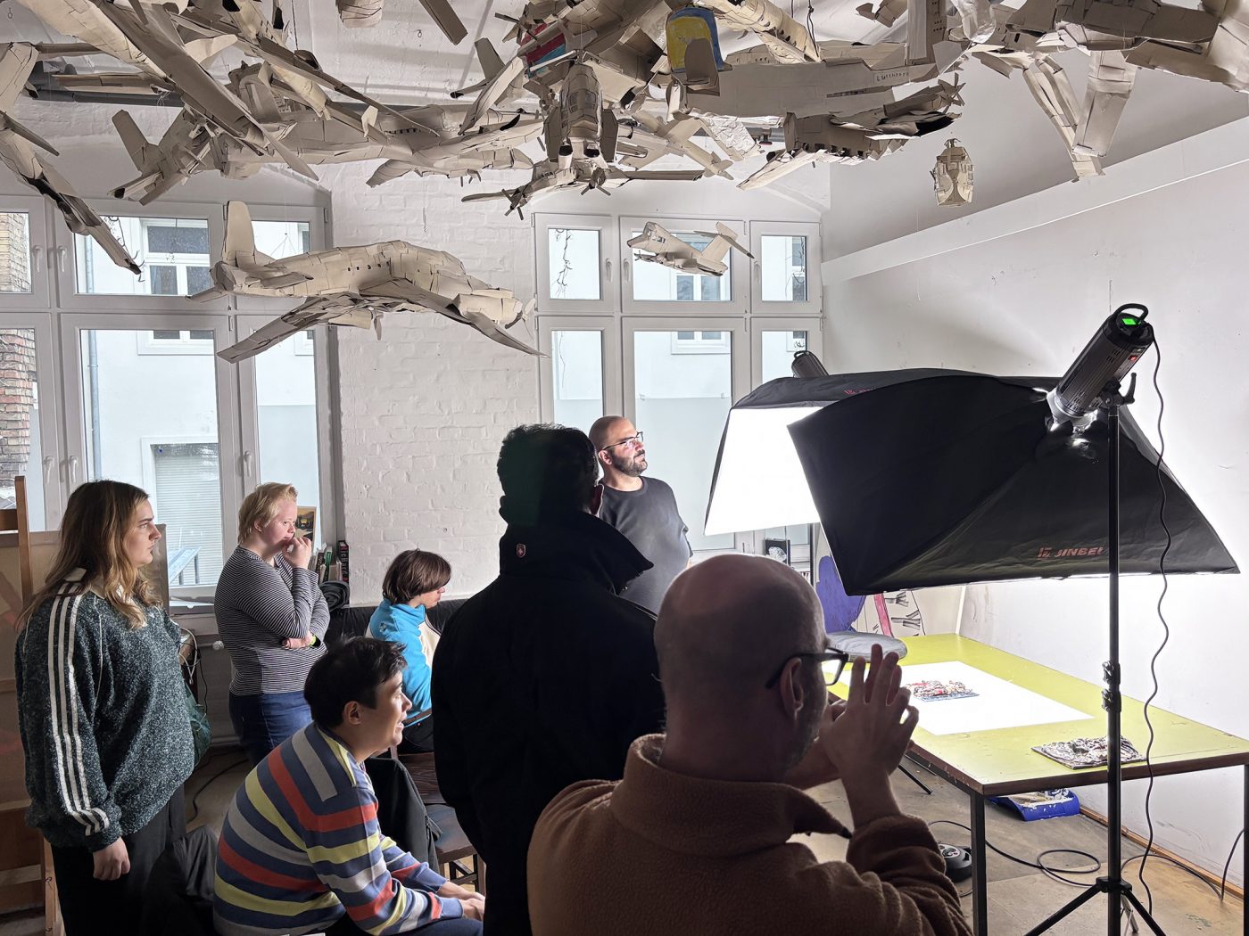 Nach einer kompakten theoretischen Einführung werden praktische Kenntnisse vertieft: Mit der App Lightroom wird gezielt mit Belichtung, Blende und Bildwirkung experimentiert. Zudem wird gemeinsam ein kleines Fotostudio aufgebaut, um optimale Lichtbedingungen zu schaffen. Anschließend fotografieren die Künstler*innen ihre eigenen Werke und setzen das Gelernte direkt in die Praxis um.